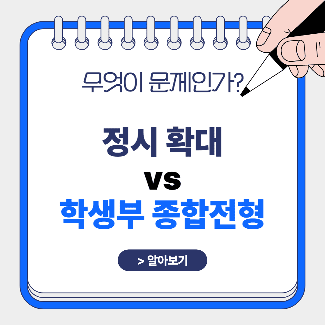 대입 전형을 둘러싼 논쟁은 매년 뜨거운 이슈입니다. 최근 몇 년간 정시 확대와 학생부 종합전형 유지 여부를 두고 의견이 엇갈리고 있습니다. 정시는 객관적인 시험 성적으로 학생을 선발하는 방식이고, 학생부 종합전형은 학생의 교내 활동 및 비교과 영역을 종합적으로 평가하는 방식입니다. 오늘은 2개 전형의 장점 및 단점, 앞으로의 대입 방향의 흐름 등 정시 확대와 학생부 종합전형 유지 논란에 대해 5가지로 분류하여 알아보도록 하겠습니다.